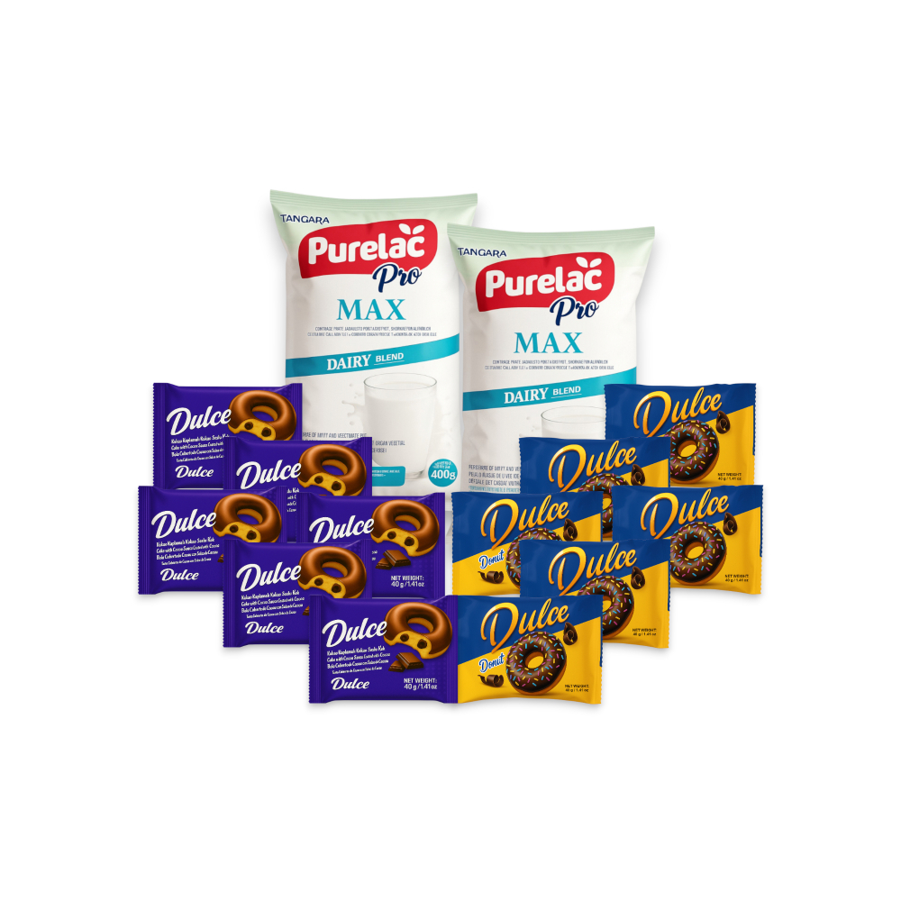 - Este set incluye 6 donas cubiertas con una capa de chocolate con cacao, 6 donas cubiertas con una capa de chocolate decorada con chispas de colores y 2 bolsas de mezcla láctea para preparar leche con delicioso olor y sabor.