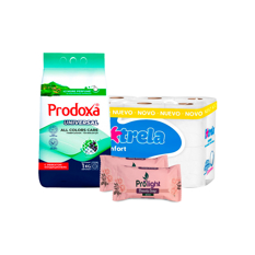 Combo básico del hogar #4: Detergente en polvo Prodoxa + Papel sanitario Extrela + Jabón de belleza con fragancia a rosa Prolight