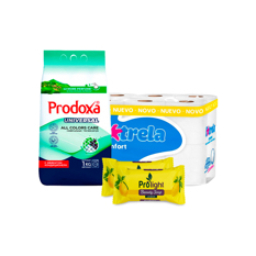 Combo básico del hogar #8: Detergente en polvo Prodoxa + Papel sanitario Extrela + Jabón de belleza con fragancia a limón Prolight