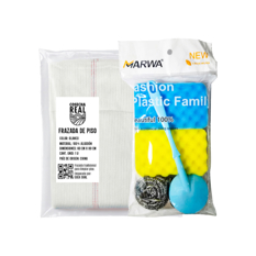 Combo de limpieza #2: Frazada de piso Cosecha Real + Paquete de esponjas, estropajos y cepillo para fregar Marwa