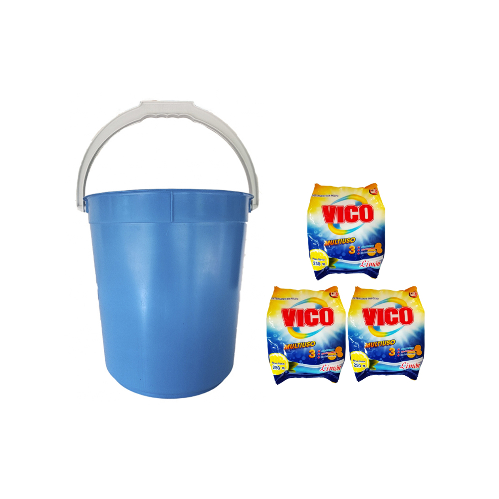 Cubo plástico + Detergente en polvo multiuso fragancia limón Vico