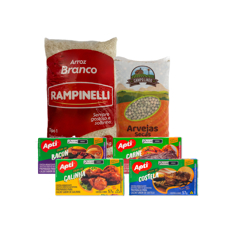 Arroz grano largo + Chicharos enteros + Caldo sabor bacon + Caldo sabor carne + Caldo sabor costilla + Caldo sabor gallina