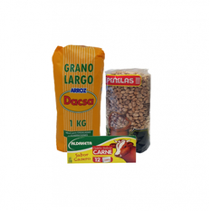 Arroz largo + Frijol bayo + Caldo sabor carne en pastilla