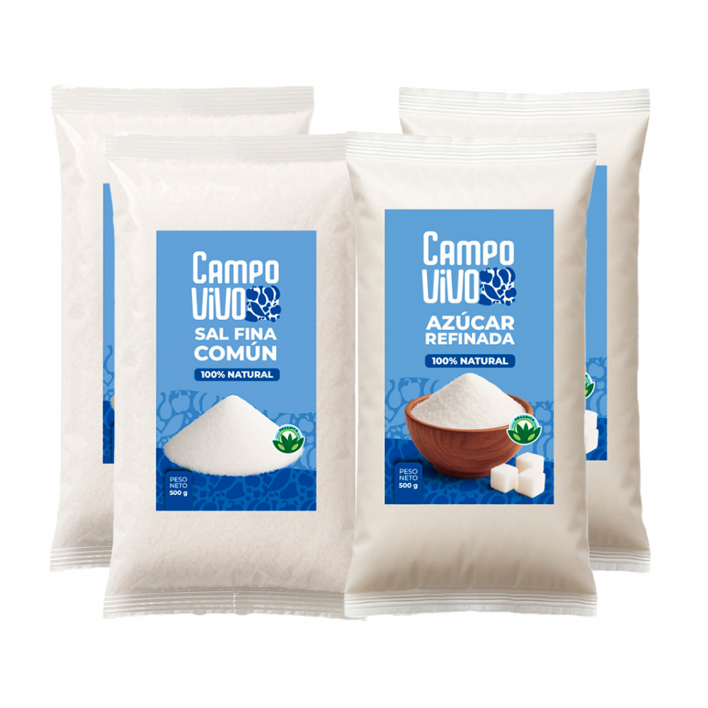Combo dulce y salado Campo Vivo #2: Sal fina común + Azúcar blanca refinada