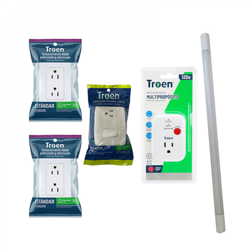Combo para el hogar de tomacorriente doble + interruptor sencillo con tomacorriente + tubo led de luz fría 18 W + protector de voltaje