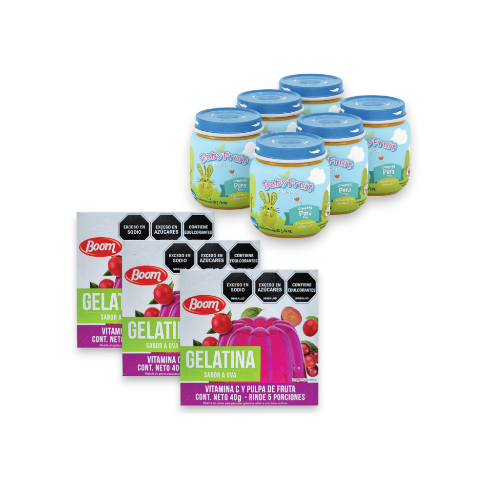 Compota de pera Baby Fruit + Gelatina sabor uva Boom
