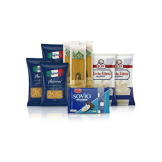 Macarrones Dolcezza + Espaguetis Ada + Leche La Cata + Galletas Sovio Crema de Vainilla Bonn