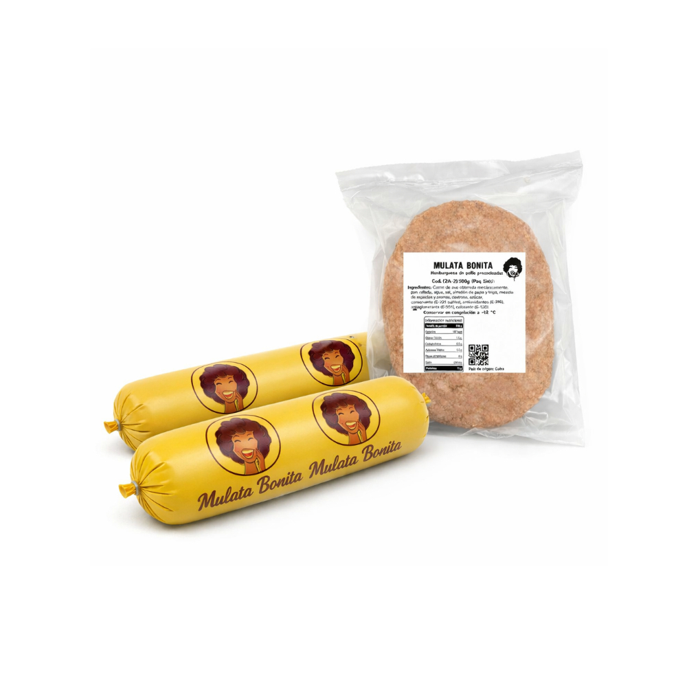 Picadillo condimentado de pollo + Hamburguesa de pollo precocinada