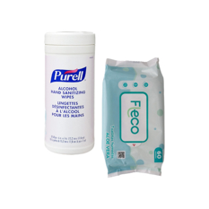Toallitas desinfectantes de manos con alcohol + Toallitas húmedas con aloe vera