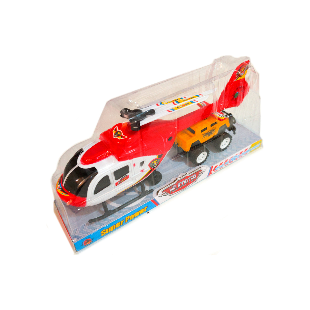 Helicóptero y jeep de juguete simulando un real, con un nivel de detalles y colores llamativos variados según disponibilidad, pensado para niños mayores de 3 años.
