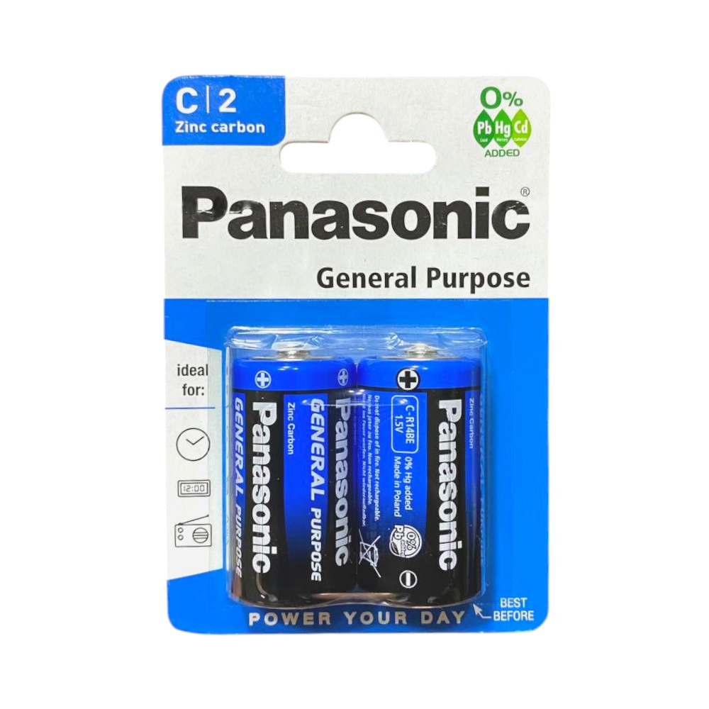 Conjunto de dos baterías de carbón-zinc tipo C2 Panasonic