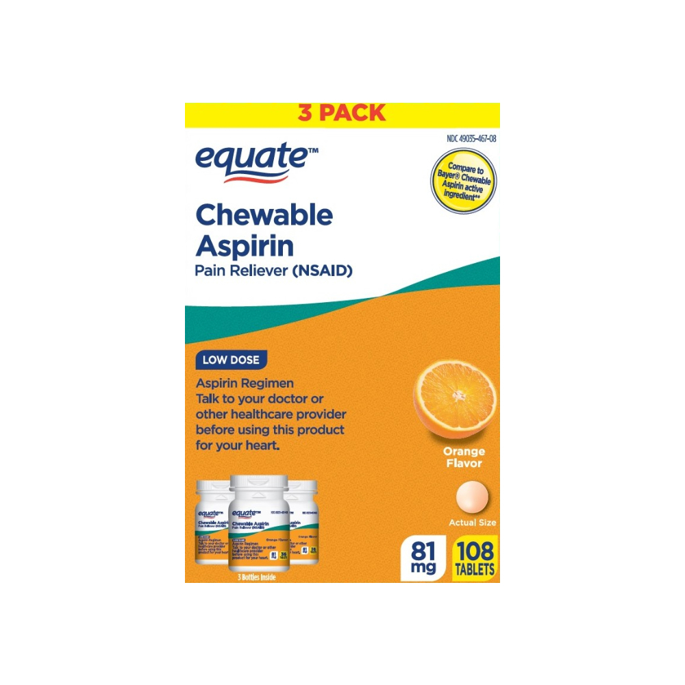 Aspirina. Ácido acetilsalicílico 81 mg Equate (108 tabletas)
