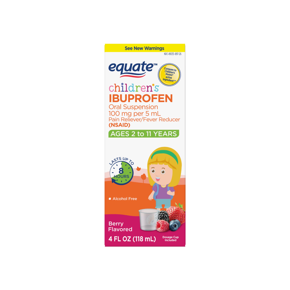Ibuprofeno en suspensión oral para niños con sabor a baya Equate (118 ml / 4 fl.oz)