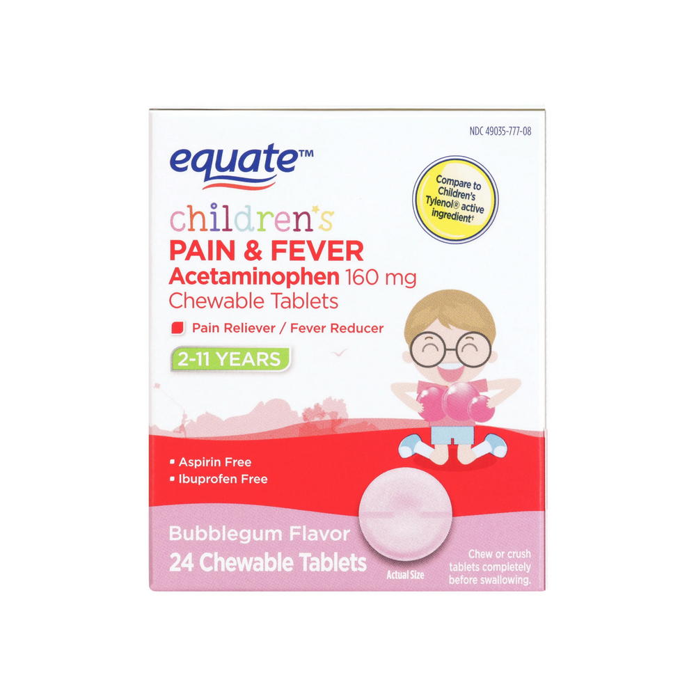 Tabletas masticables de acetaminofén para niños, sabor a chicle Equate, 160 mg (24 tabletas)