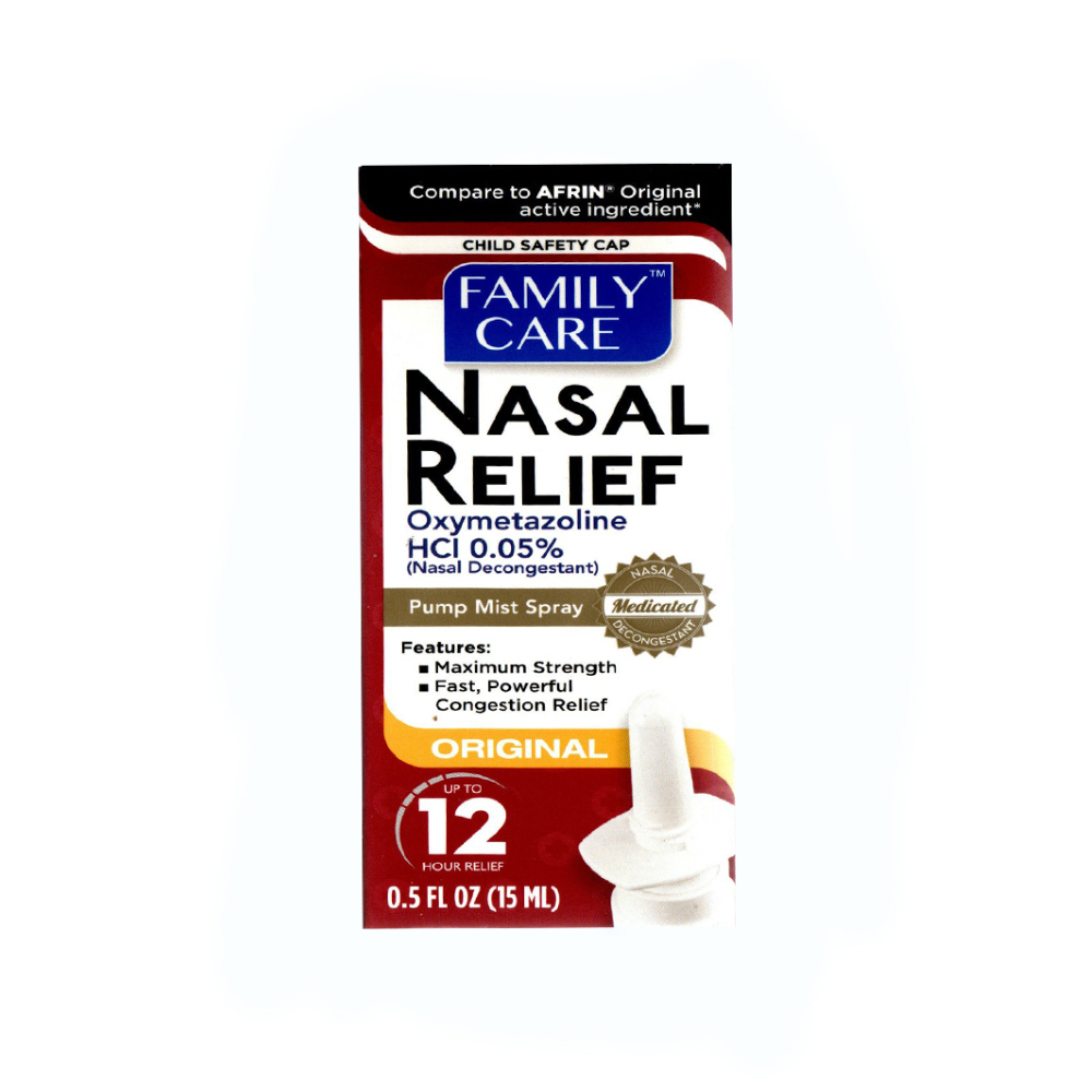 Alivio nasal de clorhidrato de oximetazolina 0.05% Family Care (15 ml / 0.5 fl. oz)