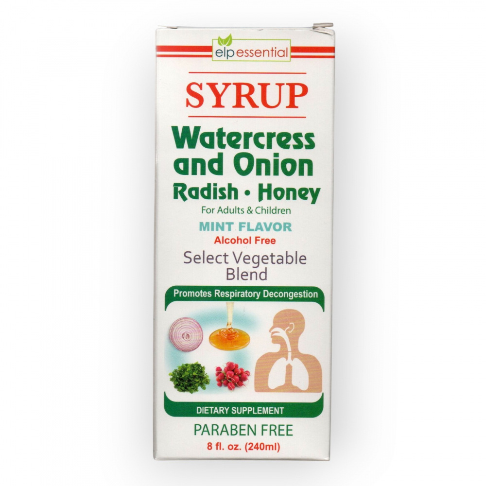 Jarabe de berro, cebolla, rábano y miel sin omega 3. Sabor menta ELP Essential (240 ml / 8 fl. oz)