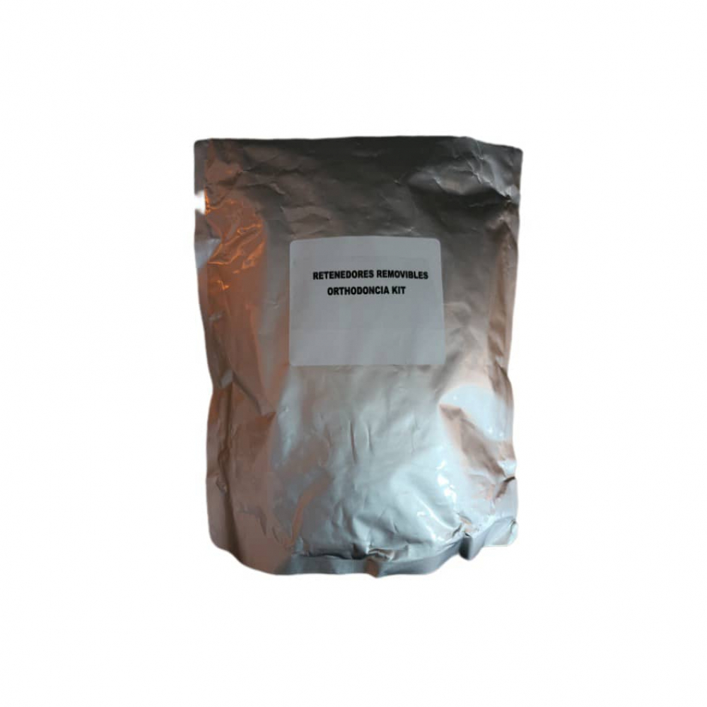 - Composición: 1 bolsa de alginato, 1 bolsa de yeso amarillo, 1 bolsa de polvo acrílico rosado autocurado, 2 frasco de acrílico auto monómero, 2 alambres de acero inoxidable