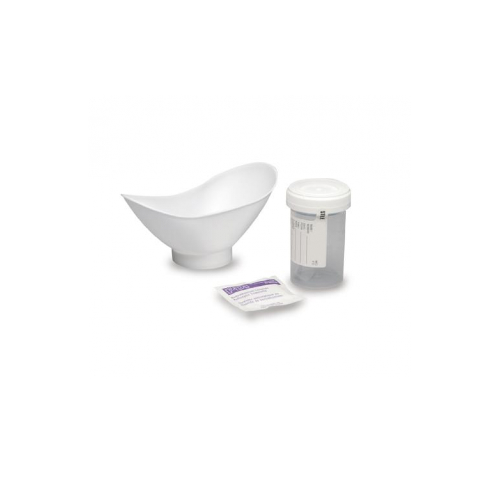 Especificaciones: Embudo de plástico con un diseño contorneado ergonómico compatible con anotomía femenina, recipiente plástico para muestra con etiqueta adherida con espacio para nombre, fecha, hora, número y prueba, en inglés y español, graduado para medir el volumen con capacidad de 80 ml con tapa de rosca estanca resistente a fugas y toallita desinfectante de benzalconio.