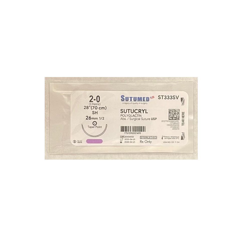 Sutura absorbible (poliglactina 910). Hilo trenzado o monofilamento. Sutura del copolímero de lactida y poliglactina 370 recubierta con glicólico y estearato de calcio. La absorción de esta sutura se completa en 70 días y se absorbe por hidrólisis. Ventajas y beneficios de la sutura: El envasado garantiza la esterilidad del producto. Agujas siliconadas que permiten un mínimo traumatismo del tejido. Fuerza de tracción certificada. Hilo uniforme que evita el arrastre del tejido. Suavidad, flexibilidad y elasticidad que facilita el uso y la concreción de los nudos. Otras características de la sutura: Hilo poliglactina 910 en color violeta. Tamaño de la hebra: de 10/0 a 1 USP. Esterilizado por óxido de etileno. Procedimientos recomendados: Sutura de tejidos blandos. Cirugía General. Oftálmico.