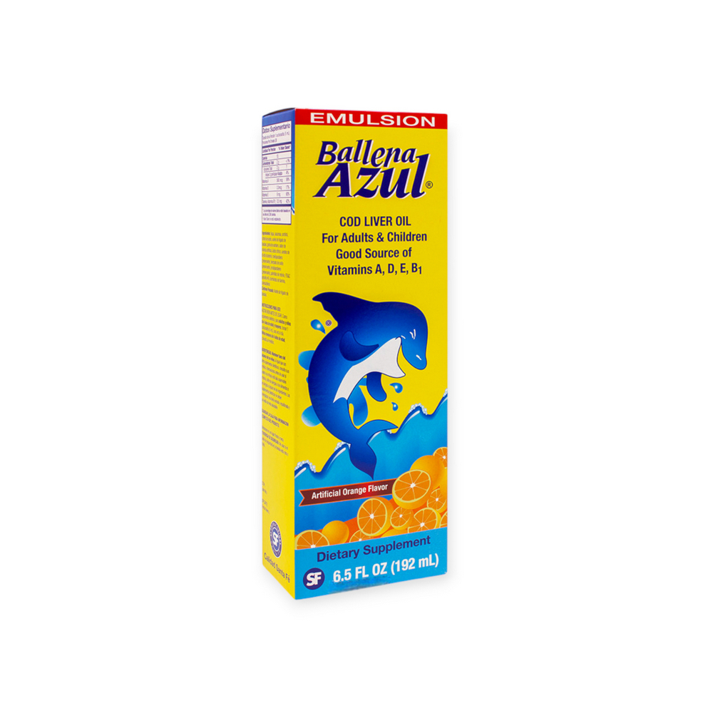 Aceite de Hígado de Bacalao para Adultos y Niños, sabor a naranja Ballena Azul (192 ml / 6.5 fl.oz)