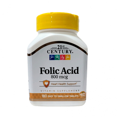 Ácido fólico 800 mcg 21st Century (180 tabletas)