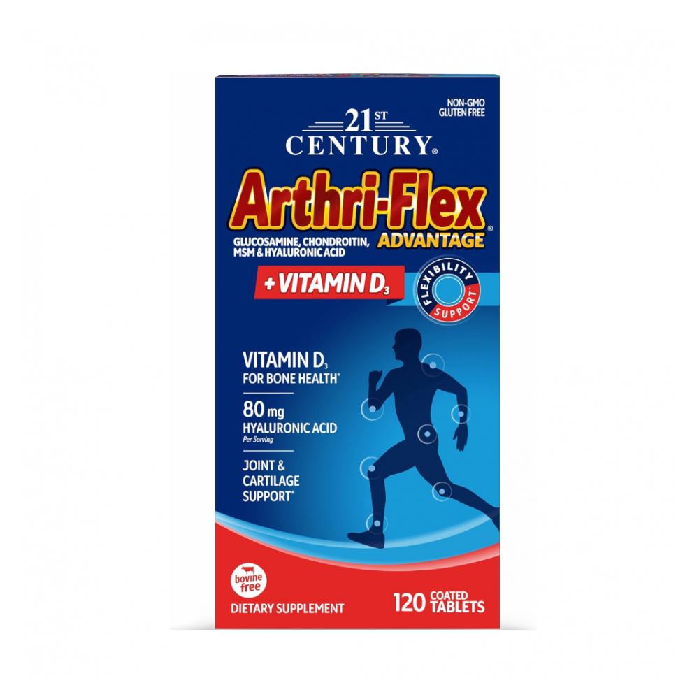 Arthri-Flex. Glucosamina + Condroitina + MSM + Ácido hialurónico + Vitamina D3 21st Century (120 tabletas)