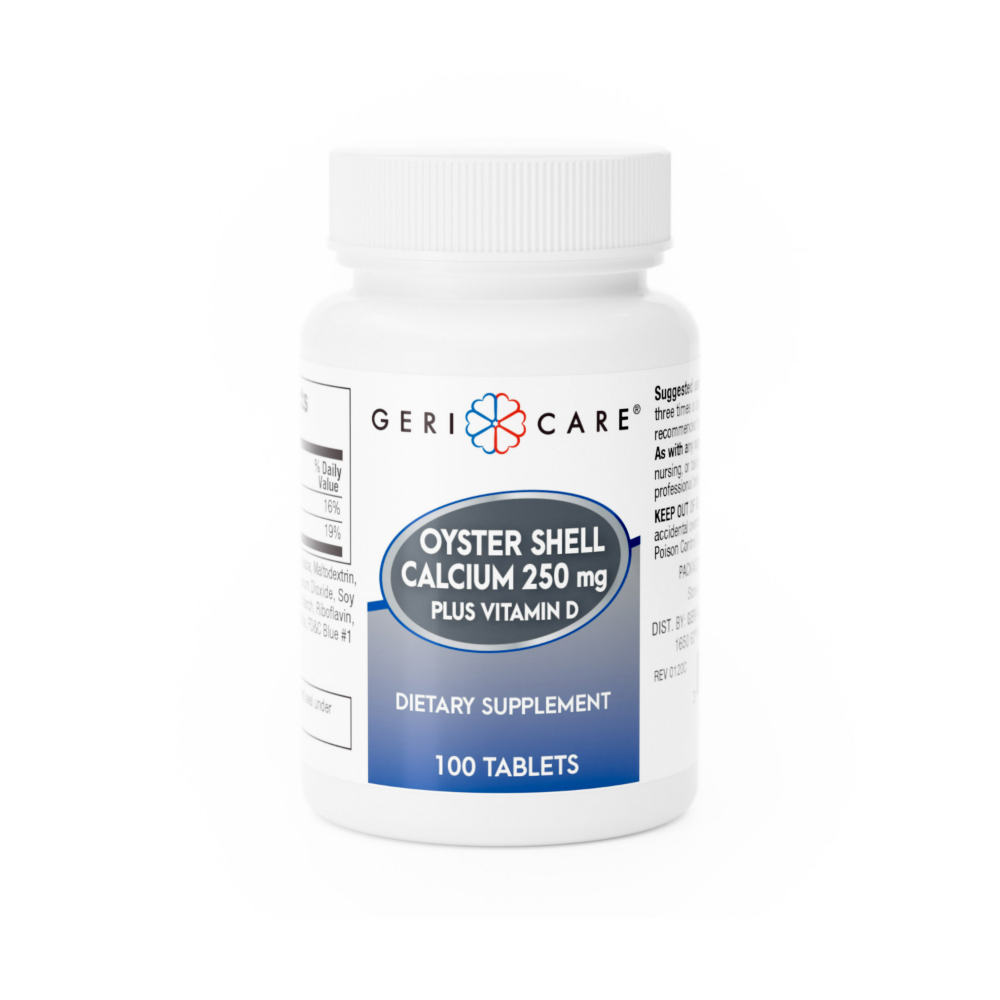 Calcio de concha de ostra con Vitamina D 250 mg Gericare (100 tabletas)