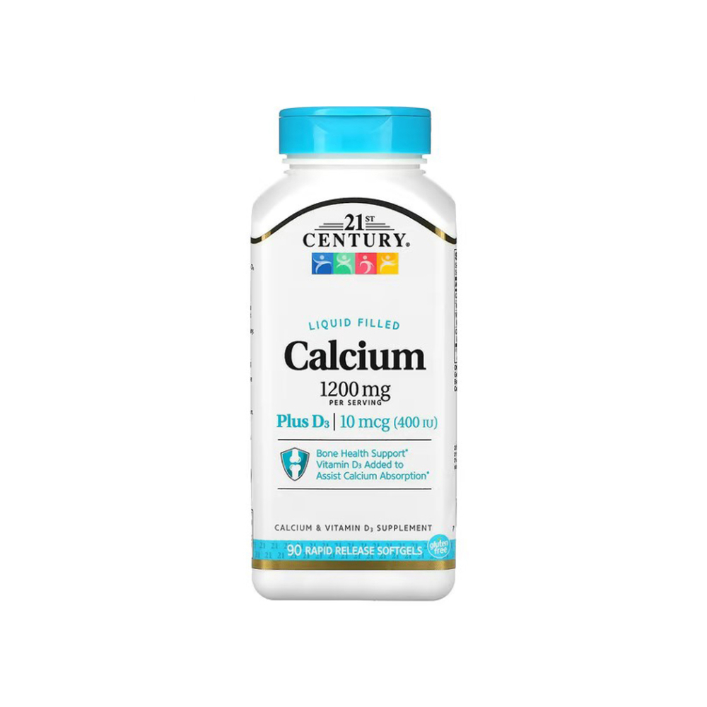 Calcio 1200 mg + Vitamina D3 10 mcg / 400 IU 21st Century (90 cápsulas blandas)