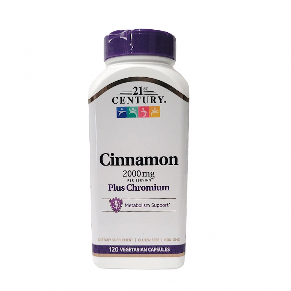 Suplemento dietético. Canela 2000 mg + cromo 400 mcg 21st Century (120 cápsulas)