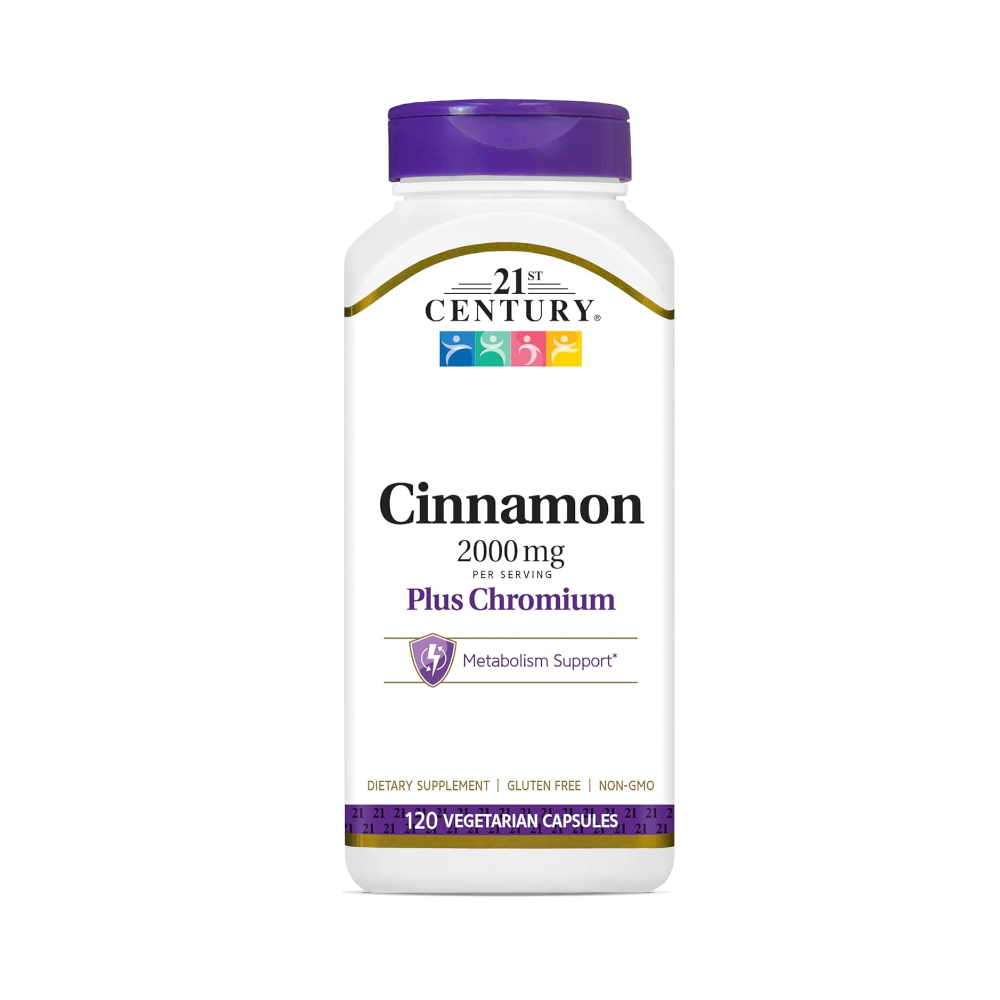 Suplemento dietético. Canela 2000 mg + cromo 400 mcg 21st Century (120 cápsulas)