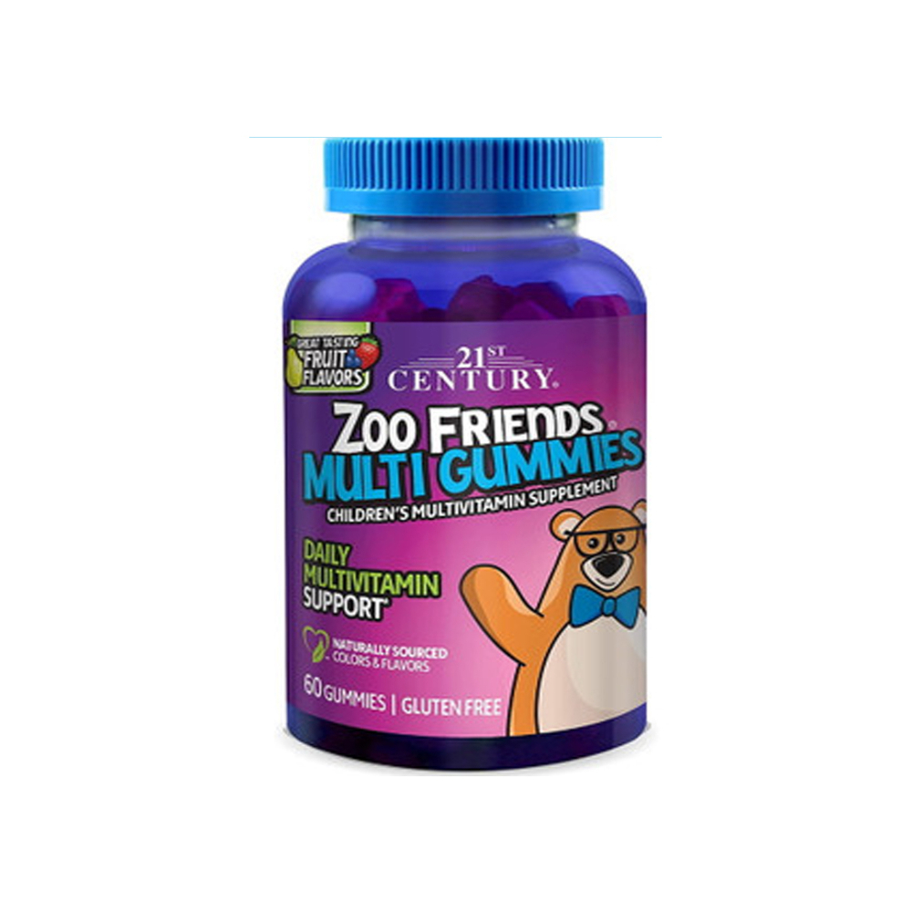 Zoo Friends. Suplemento multivitamínico para niños, sabor frutas 21st Century (60 gomitas)