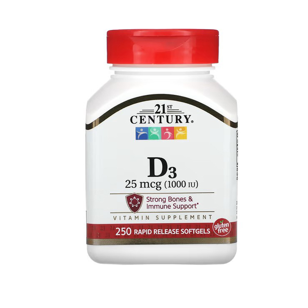 Vitamina D3 25 mcg / 1000 UI 21st Century (250 cápsulas)