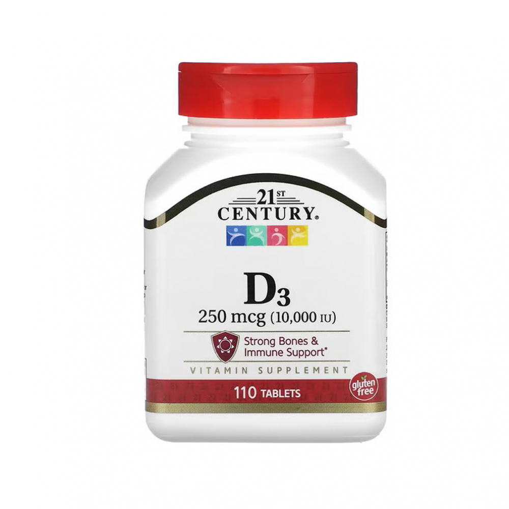 Vitamina D3 250 mcg - 10.000 UI 21st Century (110 tabletas)