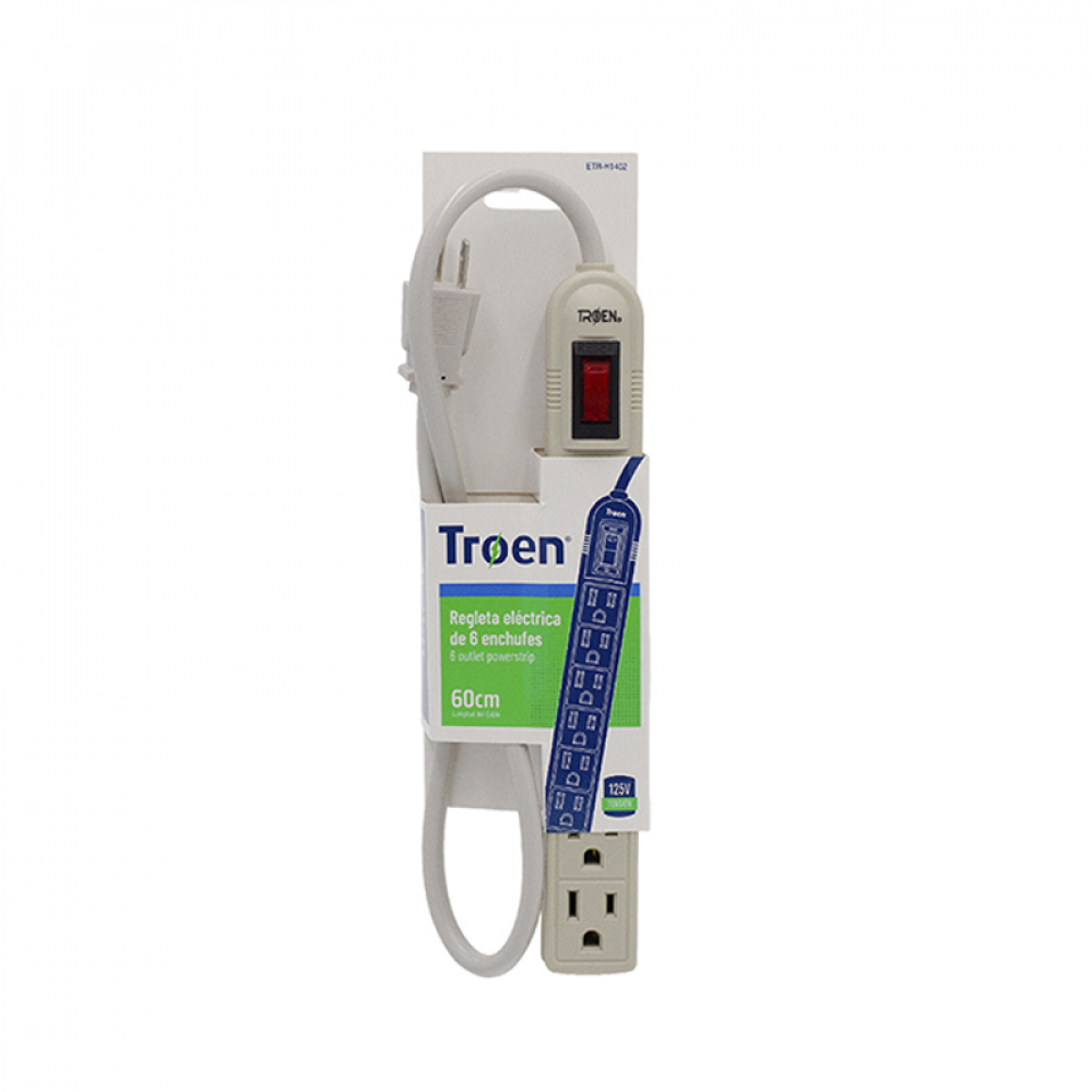 Regleta eléctrica 60 cm 6 contactos para uso en interiores, fabricada con cubierta de plástica en policarbonato auto extinguible.