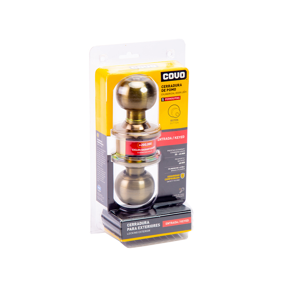 Picaporte de latón terminación bronce, para puertas estándar de entre 35mm a 45mm. Seguridad garantizada.