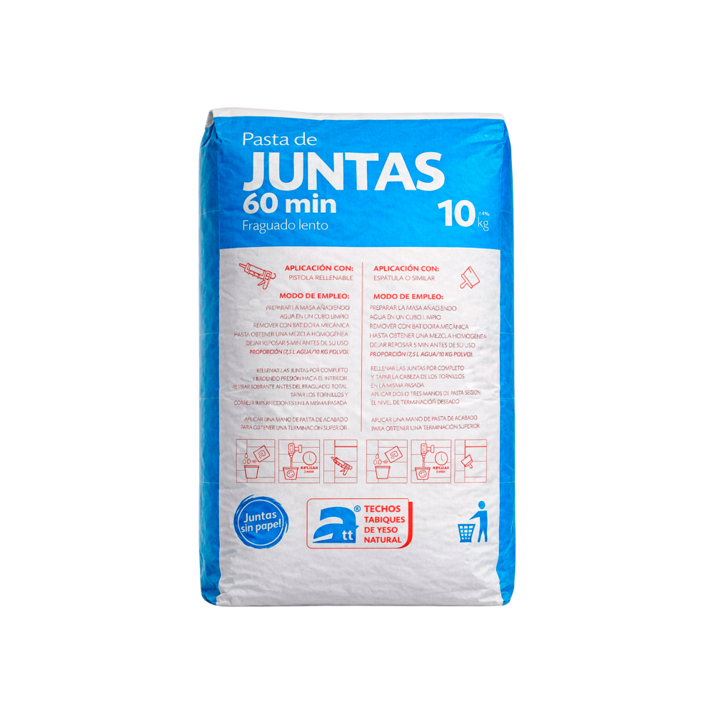 Pasta de juntas de alta calidad, ideal para el sellado y acabado de uniones, tornillos y superficies en placas de yeso (drywall). Su fraguado lento de aproximadamente 60 minutos permite un mayor tiempo de trabajo, garantizando un acabado uniforme, resistente y profesional.