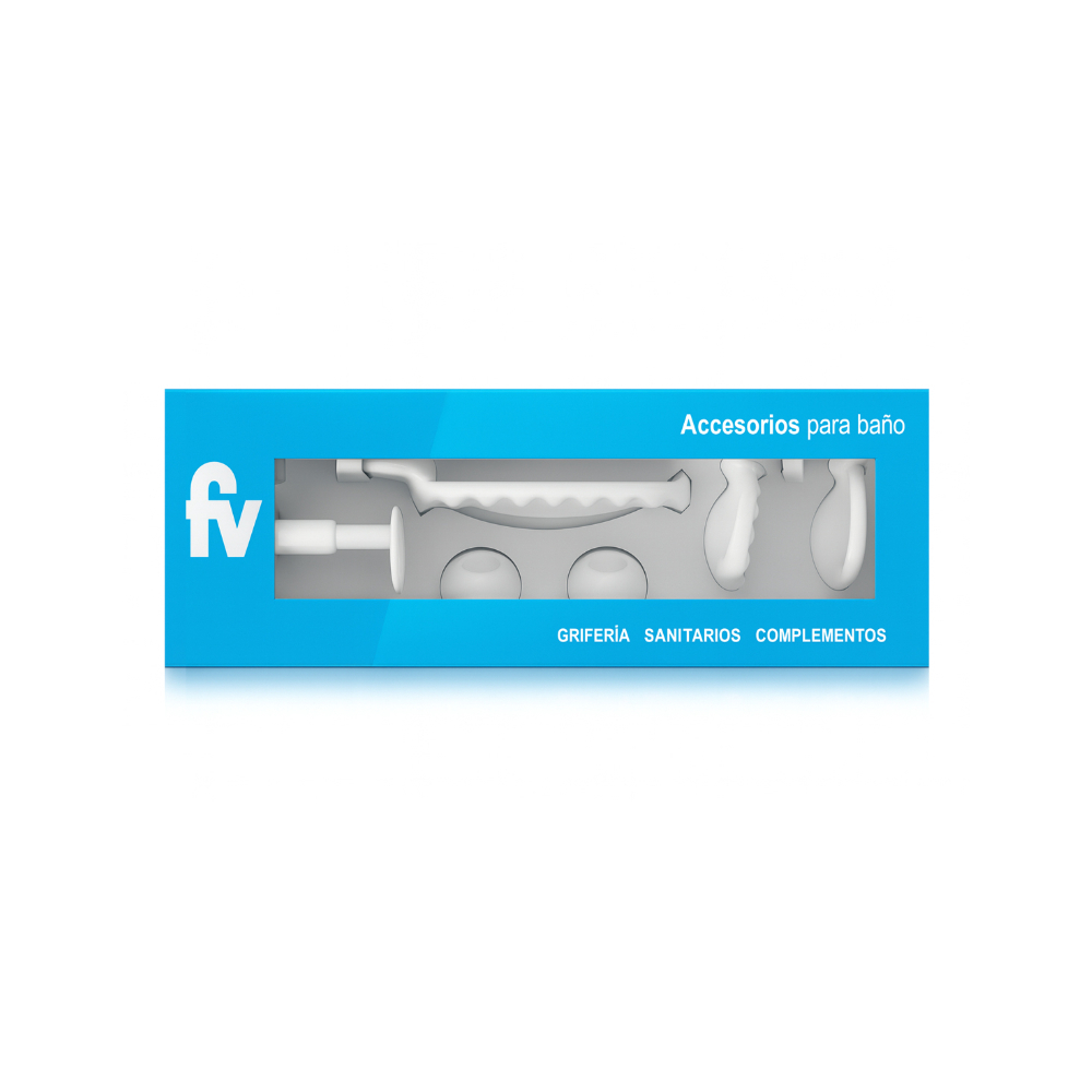 Incluye: portacepillos, jaboneras, portapapel higiénico, gancho para ropa y toallero de 60 cm.