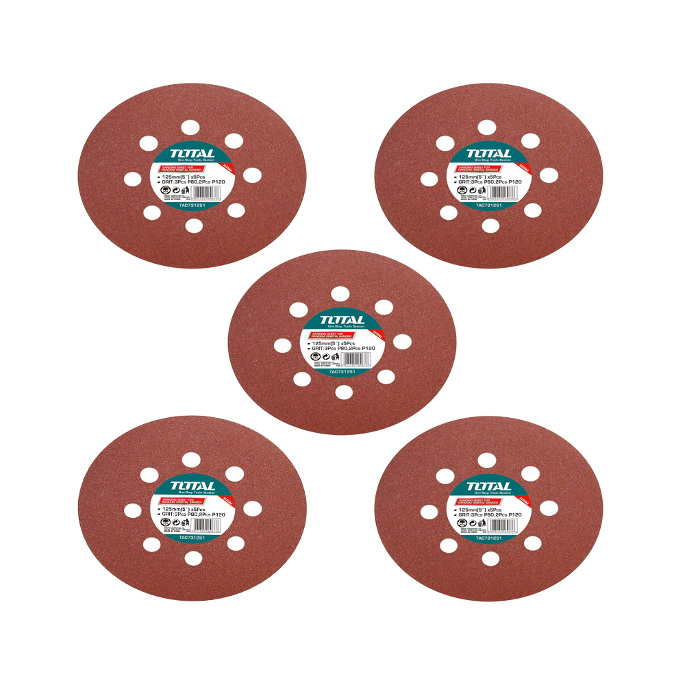 Hoja de lija para lijadora orbital aleatoria TAC731251 Total Tools (5 U)