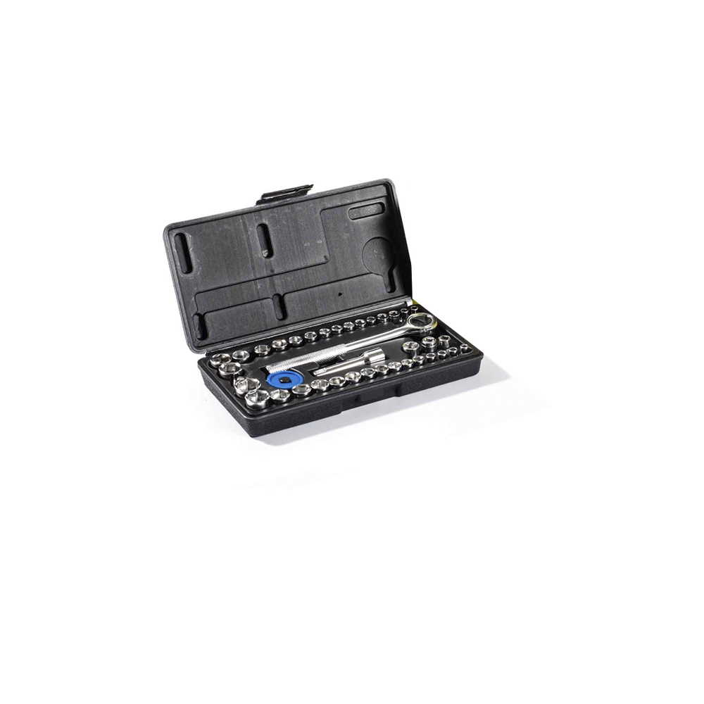 Juego de dados 40 piezas con ratchet de 3/8". Fabricado en acero reforzado con terminación cromada.