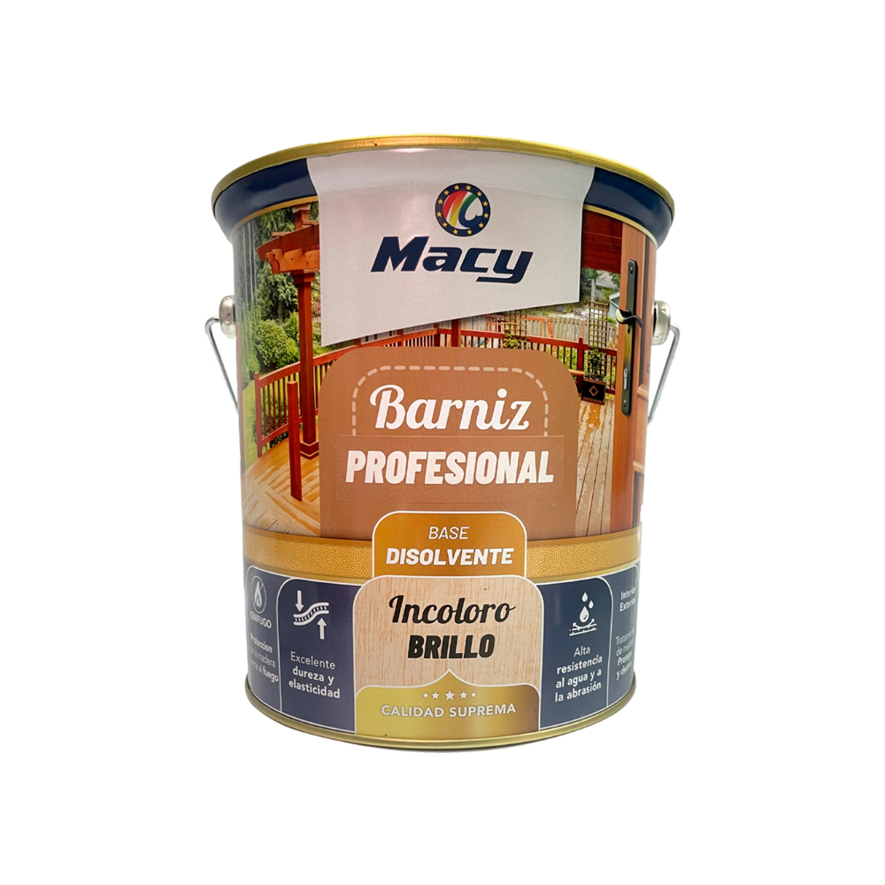 Barniz brillo profesional incoloro para maderas base disolvente Macy (4 L)