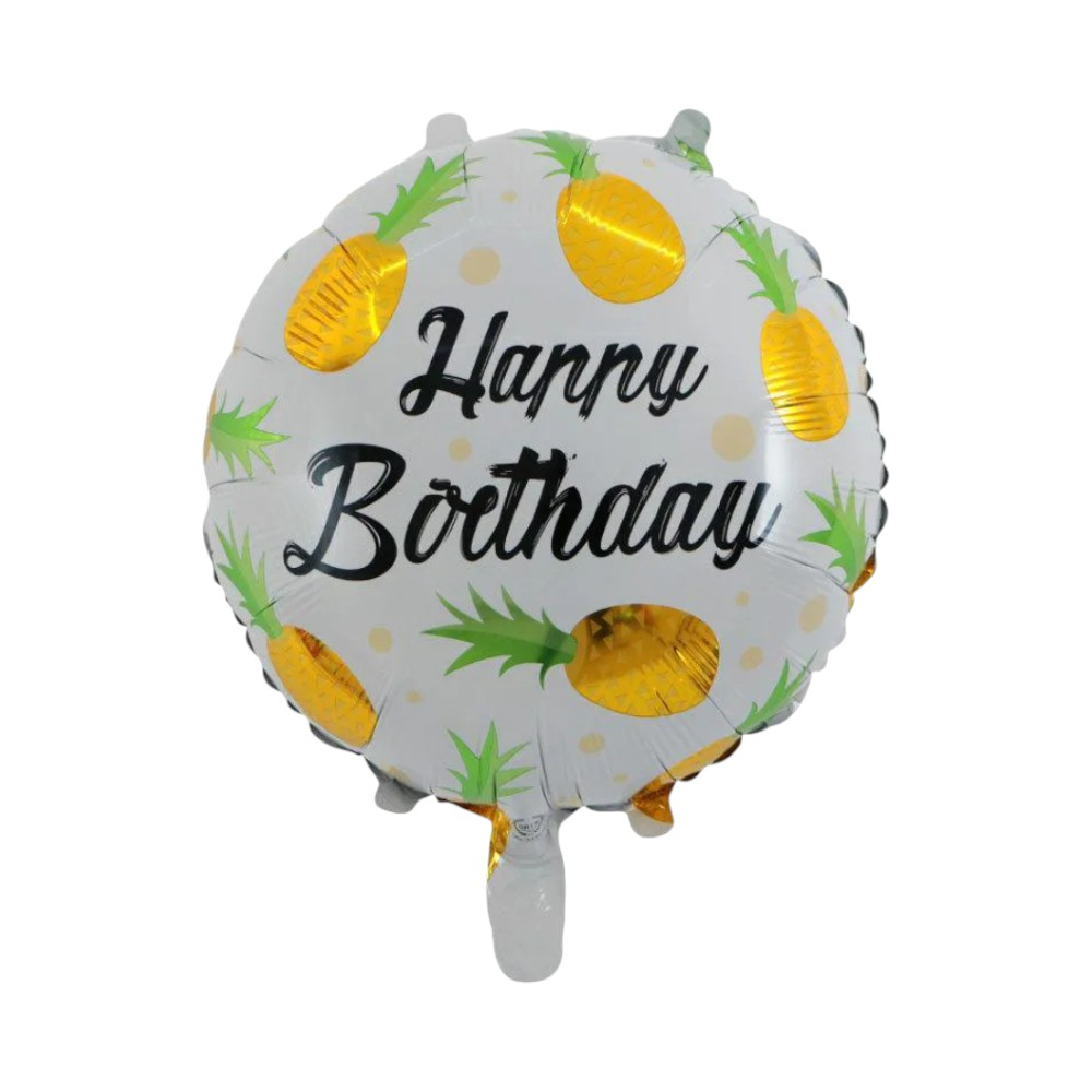 -Globo redondo Happy Birthday diseño de piñas amarillas