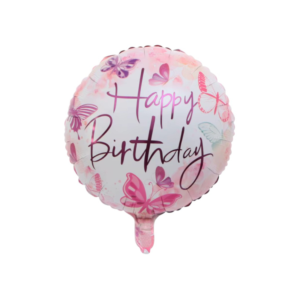 Globo con cartel de Happy birthday y diseño de mariposas Ballon (18 pulgadas)