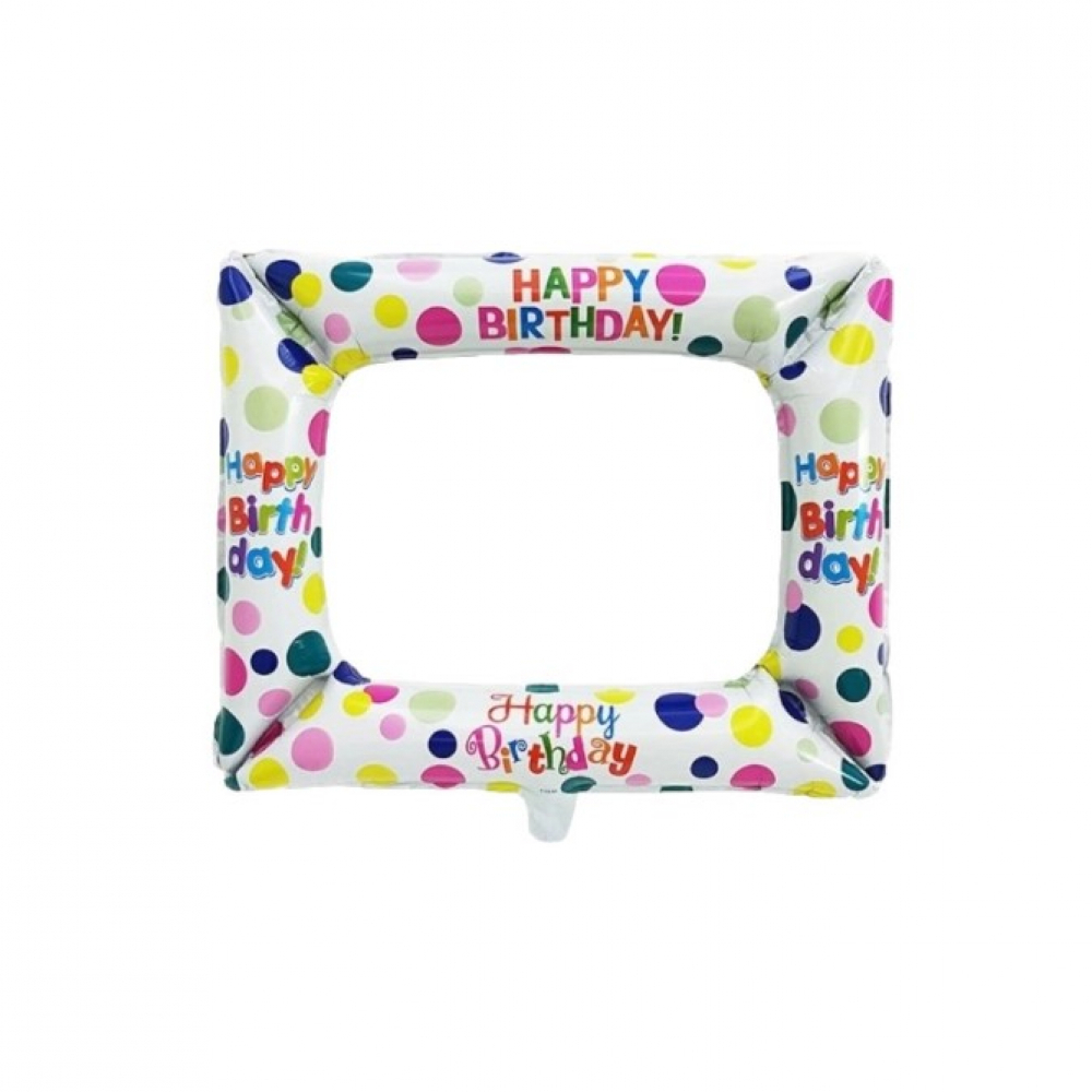 Globo con diseño de marco de fotografía con cartel de Happy Birthday Ballon