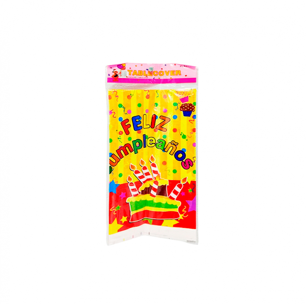 Mantel de mesa decorativo para fiestas y cumpleaños 137 cm x 183 cm, ideal para proteger la superficie mientras añade un toque festivo al ambiente. Su diseño alegre complementa la decoración de cualquier evento, con letrero de Feliz Cumpleaños y motivos de fiesta.