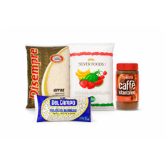 Arroz de grano largo Disempre (1 kg / 2.2 lb) + Azúcar blanca Silver Foods 1 (1 kg / 2.2 lb) + Café instantáneo aroma clásico Ristora (100 g / 3.5 oz) + Frijoles blancos Del Campo (454 g / 1 lb)