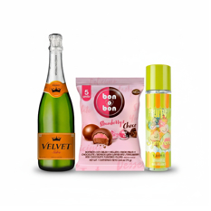 Combo día de las madres: Sidra Velvet (750 ml / 25.3 oz fl) + Colonia Fruity Symphony V.V.Love (220 ml) + Bombón con relleno de fresa y chocolate y oblea Bon o Bon (75 g / 2.64 oz)