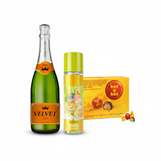 Combo día de las madres: Sidra Velvet (750 ml / 25.3 oz fl) + Colonia Fruity Symphony V.V.Love (220 ml) + Caja de bombones de chocolate rellenos con crema de maní y oblea Bon o Bon Arcor (30 x 15 g)