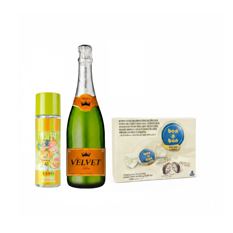 Combo día de las madres: Sidra Velvet (750 ml / 25.3 oz fl) + Colonia Fruity Symphony V.V.Love (220 ml) +Caja de bombones con relleno sabor a crema, galletita y oblea Bon o Bon (450 g / 15.87 oz)