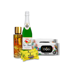 Combo para enamorados: Toallitas húmedas Doxa Elegance + Sidra La Gaita + Loción corporal -perfume- fragancia de temporada de coco Body Philosophy + Jabón de belleza con fragancia limón Prolight