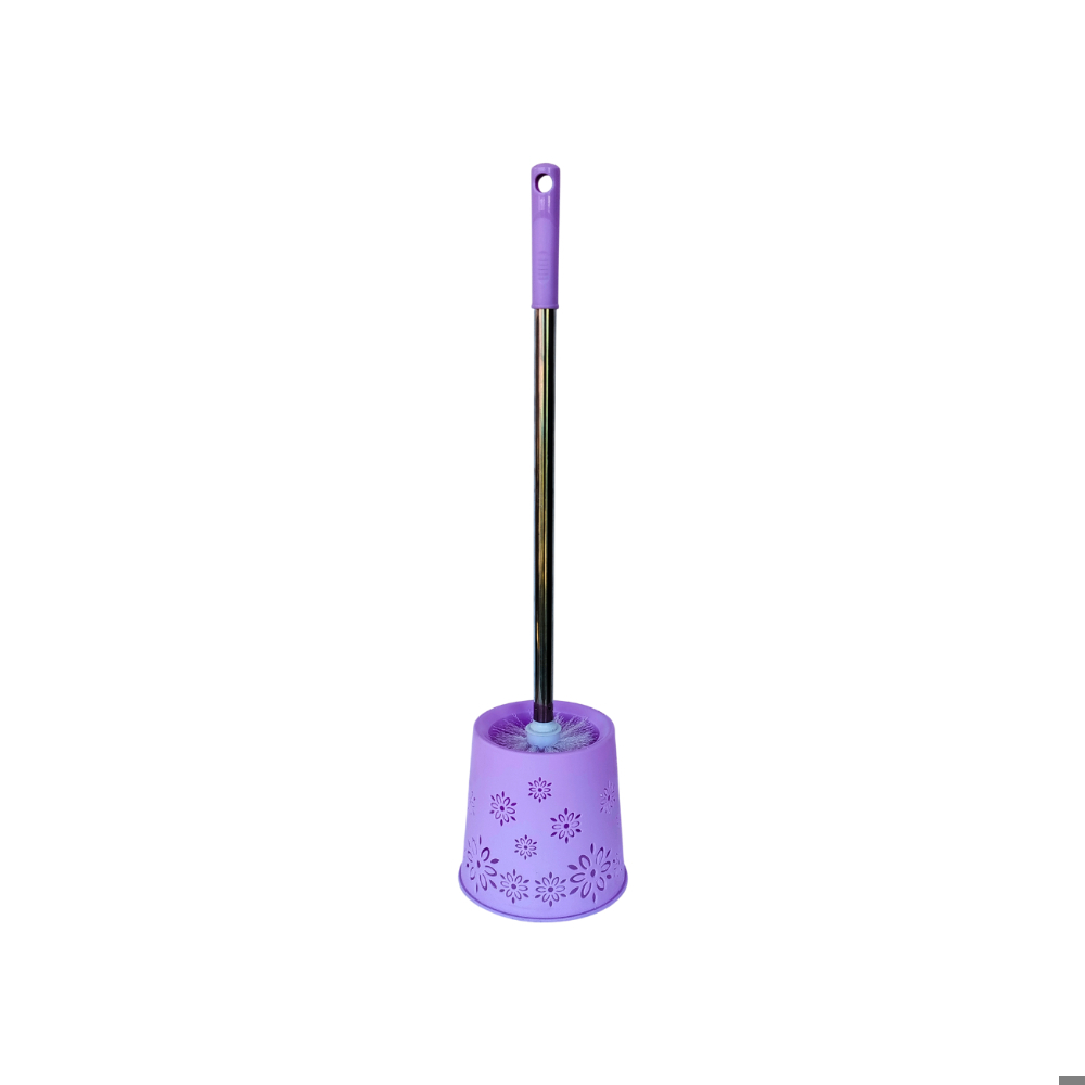Escobilla de baño de plástico lila con mango y soporte Gutza